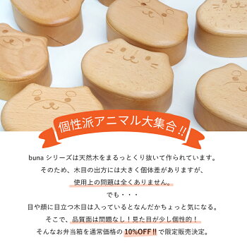【buna】木目強めの個性派アニマルウッド弁当箱 ※こちらは品質面に問題はありませんが、見た目が少し特徴的な『個性派』タイプのアニマルウッド弁当箱です。