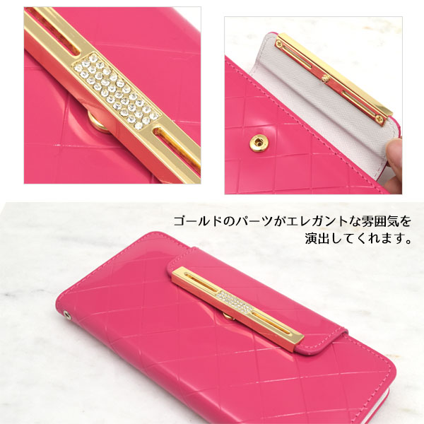 エナメルの光沢とラインストーンがエレガント感を演出してくれるケースです。